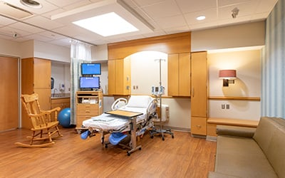 After delivery, you will be moved to a private room on the Women and Newborn unit that includes comfortable sleeping accommodations for you and your partner, a private bathroom and shower, adjustable lighting, telephone, television and complimentary Wi-Fi.